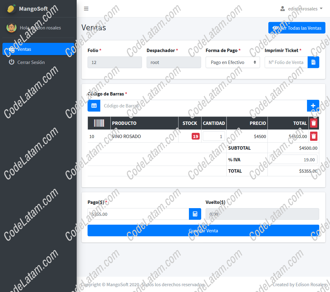 El Código fuente del Sistema de Ventas, desarrollado utilizando tecnologías como Laravel, Bootstrap 4, Jquery y MySQL, ofrece un recurso indispensable a la hora de llevar un registro persistente de cualquier PYME. El diseño de la web se adapta a cualquier dispositivo, bien sea Pc, Tablet o Smartphone.